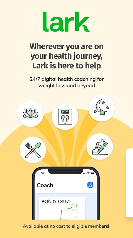 Kesihatan kelihatan berbeza untuk semua orang, itulah sebabnya Lark menawarkan program unik yang direka untuk menyasarkan matlamat kesihatan individu anda. Sama ada anda ingin membina tabiat sihat untuk menurunkan berat badan, mendapatkan bantuan mencegah atau menguruskan diabetes, menurunkan tekanan darah anda, atau sekadar berasa terbaik, Lark mempunyai program untuk anda. Setiap program Lark termasuk bimbingan kesihatan digital 24/7 daripada telefon pintar atau tablet anda, skala pintar, apl kesihatan Lark dengan penjejak makanan dan aktiviti, petua dan sumber yang berguna serta peranti khusus program lain.