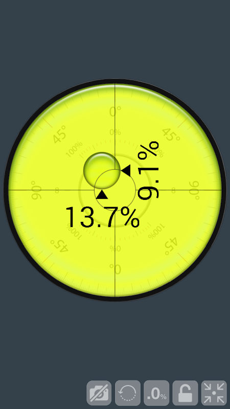 - Tingkat semangat reguler (tingkat gelembung, libella) - bekerja seperti alat tingkat gelembung tradisional, tempatkan ponsel cerdas atau tablet Anda, di permukaan atau pada objek yang akan diukur atau ditetapkan pada setiap sudut,