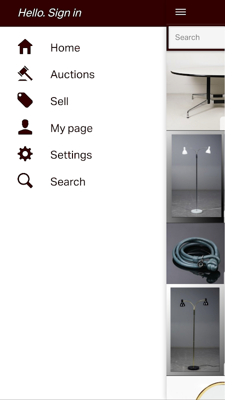 Gunakan app untuk mencari seni, reka bentuk, perabot, barang kemas - dan tawaran pada lelongan