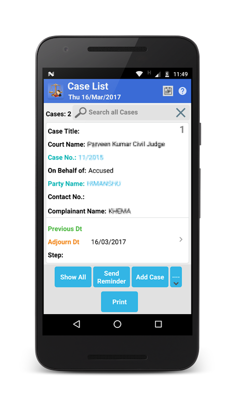 * Menyimpan Parti(Pelanggan) dan juga butiran hubungan Adverse Party Advocate untuk Kes dan panggilan yang didayakan daripada apl.