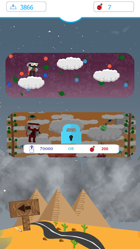 Jump over the clouds easily using the JetPack and go up to reach the highest point of the sky