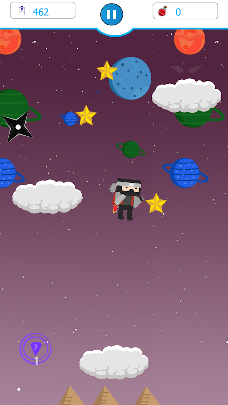 In another world where there is a lazy ninja who wears a jetpack in his back, you can find a touchable clouds that boosts the jumps to go up and discover the space.