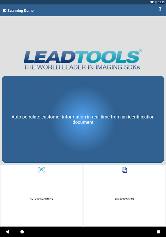 The LEADTOOLS ID Scanner app reads barcodes from North American driver's licenses and displays all decoded data elements in a convenient format. Convenient for law enforcement, alcohol/tobacco sales, and security personnel.