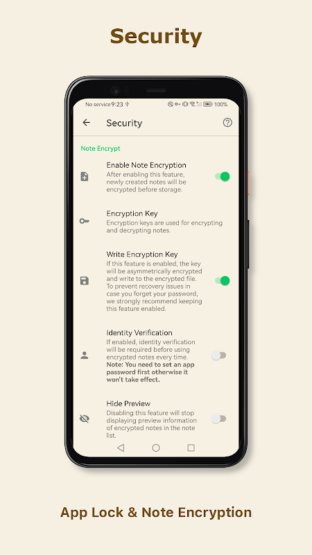 - Penyulitan Nota: Menggunakan algoritma penyulitan AES 256-bit dengan kata laluan yang ditentukan pengguna untuk melindungi kandungan peribadi anda daripada mengintip;