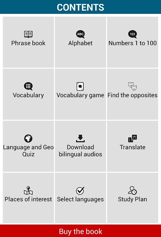 100 pelajaran membantu Anda belajar dengan cepat dan menggunakan bahasa asing dalam berbagai situasi (misalnya di hotel atau restoran, saat liburan, obrolan ringan, untuk mengenal orang, belanja, di dokter, di bank, dll). Anda dapat mengunduh file audio dari www.50languages.com ke pemutar mp3 dan mendengarkannya di mana saja - di halte bus atau stasiun kereta api, di dalam mobil, dan selama istirahat makan siang! Untuk mendapatkan hasil maksimal dari 50languages, belajar satu pelajaran sehari dan ulang secara teratur apa yang telah Anda pelajari dalam pelajaran sebelumnya.