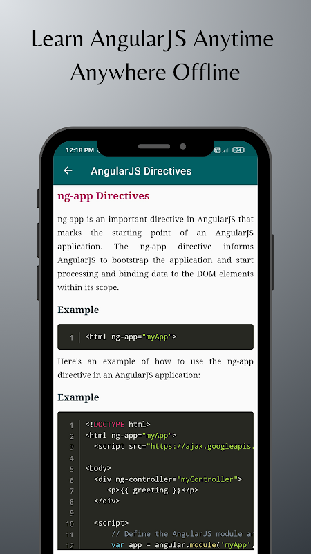 Belajar AngularJS terus dari peranti Android anda! Aplikasi ini menawarkan pengenalan menyeluruh kepada rangka kerja AngularJS, sesuai untuk pemula dan mereka yang ingin meningkatkan kemahiran mereka. Selami konsep teras dengan penerangan yang mudah difahami, contoh praktikal dan kuiz interaktif.