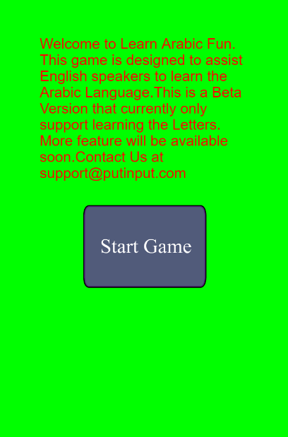 Welcome to Learn Arabic Fun. This game is designed to assist English speakers to learn the Arabic Language. This is a Beta Version