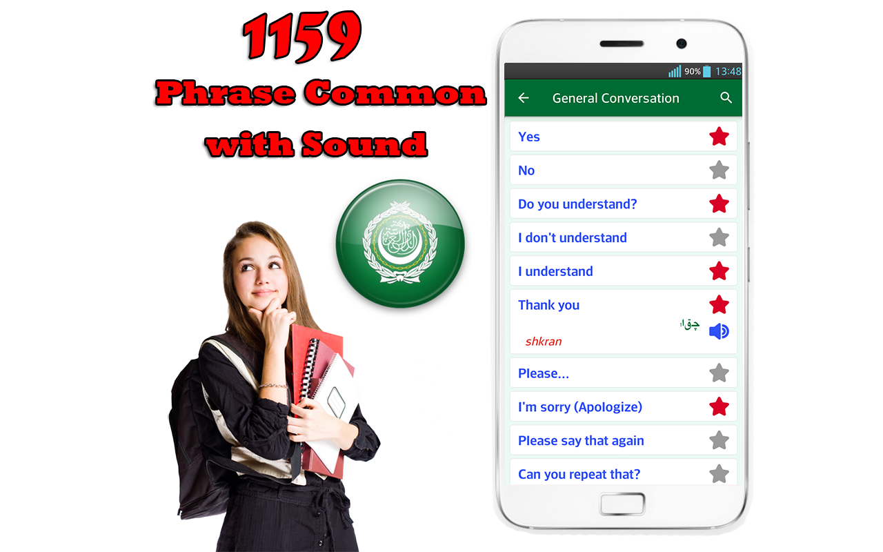 Belajar Bahasa Arab mempunyai 1459 frasa biasa dalam bahasa arab dengan bunyi