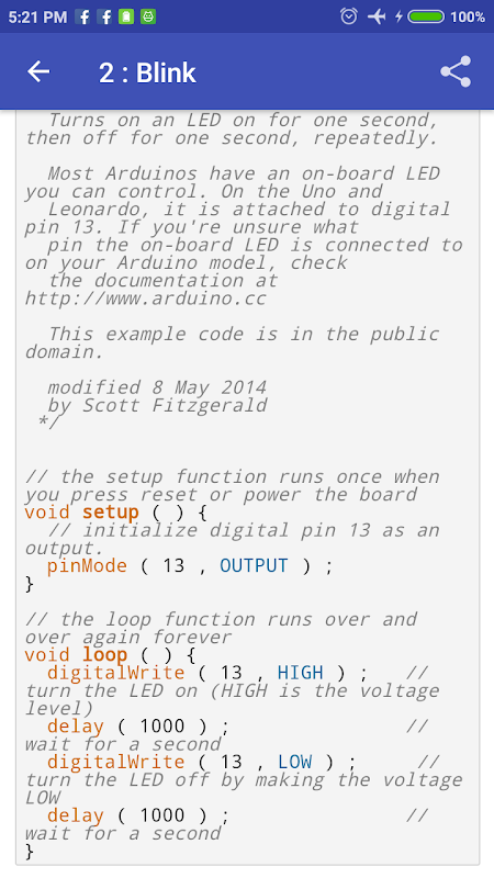 App Mengandungi Arduino Tutorials dengan contoh kod program asas dalam Arduino.