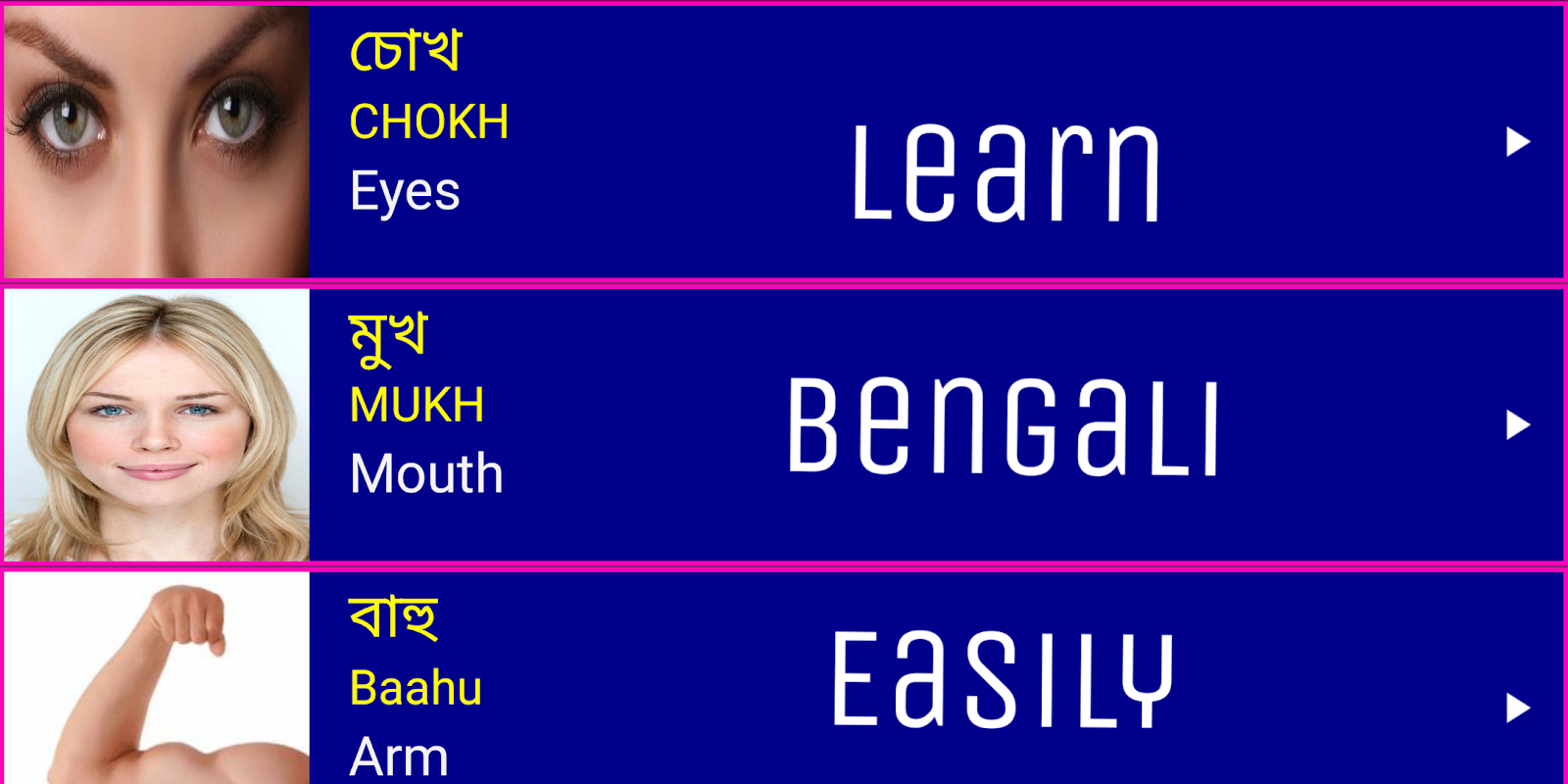 untuk mempelajari perbendaharaan kata Bangali yang penting daripada bahasa Inggeris dengan mudah.