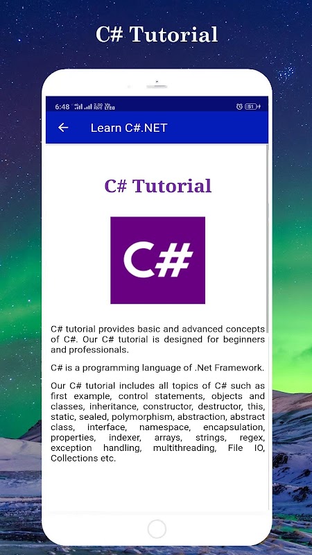 Jika anda sedang mencari aplikasi untuk mempelajari asas pengaturcaraan c # .net untuk maju tanpa pengetahuan pengaturcaraan. Anda berada di tempat yang betul. Sama ada anda seorang programmer yang berpengalaman atau tidak, aplikasi ini adalah untuk semua orang yang ingin mempelajari pengaturcaraan C # .net.