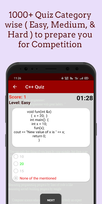 ★ Quiz Pemrograman 1000 + C ++ dengan kategori [Mudah, Sederhana & Hard] untuk menyediakan anda untuk Peperiksaan Kompetitif dengan bantuan tutorial dan pengaturcaraan C ++