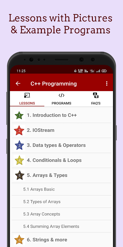 ★ Ini aplikasi Bahasa Pemrograman <+ C + + membolehkan anda membawa Tutorial pengaturcaraan C ++ luar talian dalam telefon android anda.