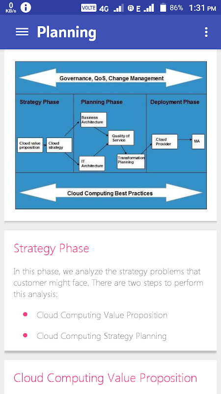 This application allows users to learn cloud computing and all the topics related to it in a step by step hierarchy manner.