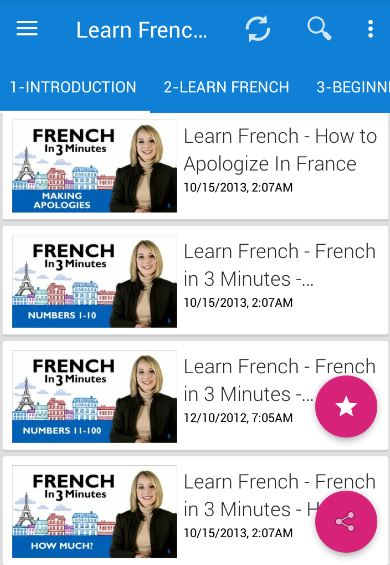 Watch natural and authentic conversations in French in this video app. Each video features: