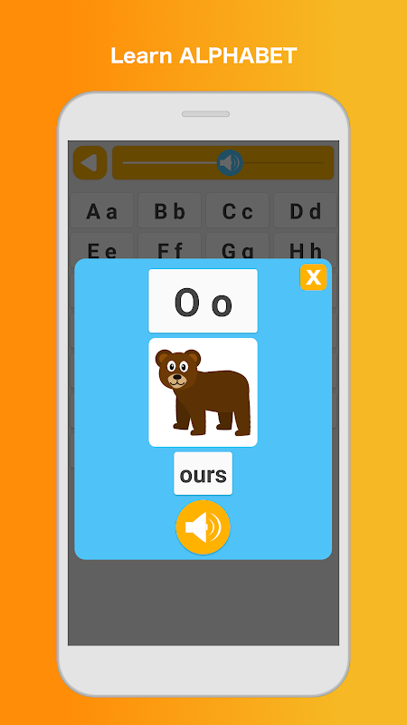 Anda boleh belajar mengenali dan membaca aksara Perancis, dan sebutan dalam Bahagian Abjad aplikasi ini.