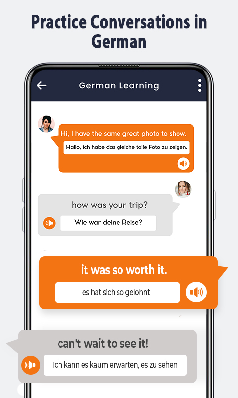 Menariknya, aplikasi pembelajaran Jerman percuma menawarkan pengguna mencuba kuiz untuk mempelajari frasa dan perkataan Jerman. Ia menyediakan terjemahan bahasa Inggeris ke bahasa Jerman untuk perbualan bahasa Jerman setiap hari yang diperlukan pada peringkat asas dan lanjutan.