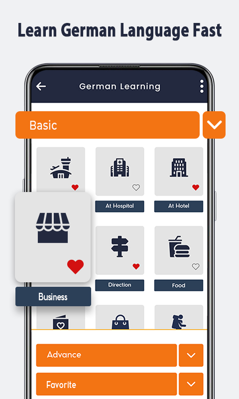 Belajar bahasa Jerman dan fasih bertutur bahasa Jerman melalui aplikasi pembelajaran bahasa Jerman di luar talian. Untuk mempelajari bahasa Jerman untuk pemula bukanlah mudah, orang ramai kelihatan bimbang tentang cara berbahasa Jerman atau untuk meningkatkan perbendaharaan kata Jerman. Apl Pembelajaran Jerman percuma menjadikan pengguna dapat mempelajari frasa & perkataan Jerman dan bercakap bahasa Jerman dengan fasih.