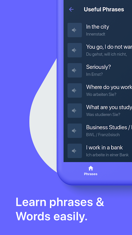 Ketahui bahasa Jerman Luar Talian: Bercakap dengan lancar: adalah aplikasi android untuk mempelajari frasa bahasa Jerman dan kata-kata dari pelbagai kategori dan dari pelbagai bahasa asas.