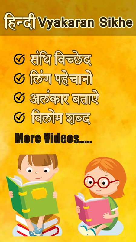 Learn Hindi Grammar Videos App has various categories related to basic and advance Grammar learning in Hindi. Hindi Grammar App 2019 with Videos for All age people for learning Hindi Vyakaran in simple steps. Hindi Vyakaran Sikhe Videos for Girls and Boys.