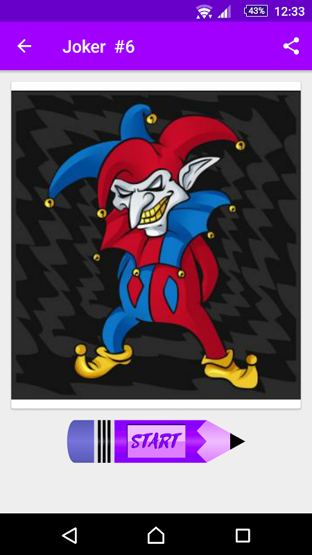 Our App provides a large collection of drawings including: Easy Joker, LEGO Joker, Kitty Joker, Realistic Joker and Tribal Joker.