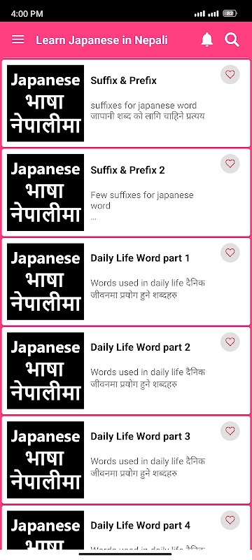 Menggunakan aplikasi ini pelajar boleh belajar bahasa jepun bhasa lebih Pengetahuan. Aplikasi ini ialah aplikasi pendidikan terbaik dalam bahasa Jepun nepali Penyelesaian/Panduan yang akan berusaha seperti sumber poket yang hebat.