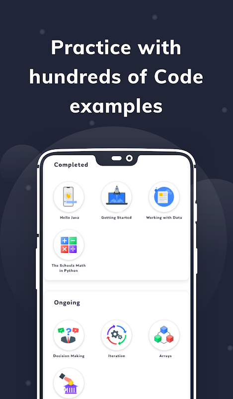 Aplikasi Java X termasuk koleksi luas ratusan program (contoh kod) dengan ulasan, berbilang soalan dan jawapan. Semua keperluan pembelajaran pengaturcaraan anda digabungkan dalam satu aplikasi pembelajaran kod.