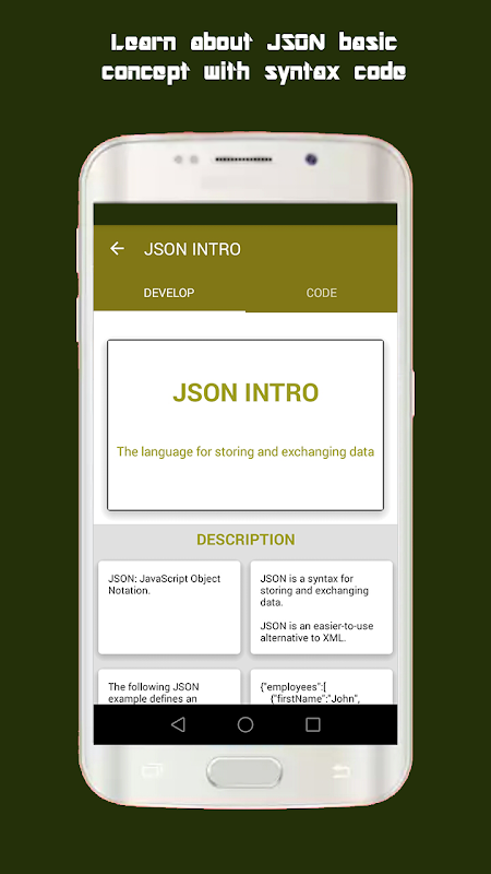 This app will teach you JavaScript Object Notation in details at anywhere.