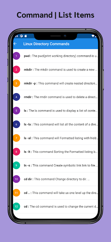 Di sini, dalam aplikasi arahan Linux ini kebanyakan arahan Linux disertakan dengan penjelasan. Belajar apl arahan Linux untuk tugas yang membimbing untuk mempelajari persekitaran Linux dan arahan Linux dan skrip shell.