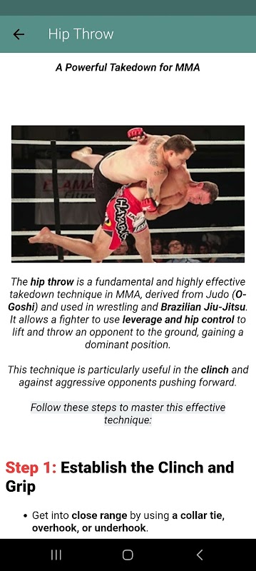 Menjadi pejuang MMA memerlukan penguasaan disiplin yang berbeza. Dalam apl ini, anda akan menemui: