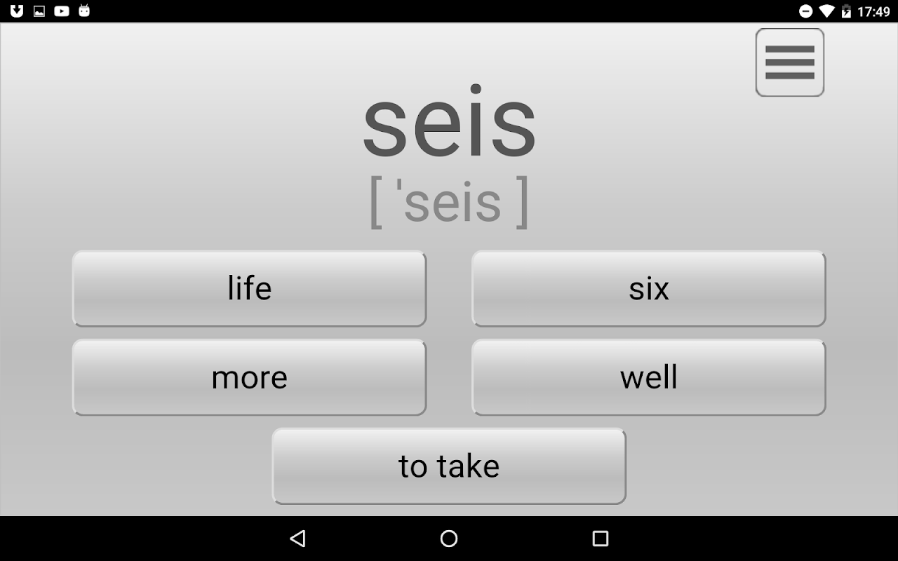 Untuk berkomunikasi dengan fasih dalam bahasa apa-apa, tidak perlu menghafal beribu-ribu perkataan. Terdapat statistik, di mana 90% daripada ucapan kita, tidak kira umur, tahap pendidikan dan bahasa yang kita bercakap terdiri daripada 300-350 perkataan. Dalam permohonan ini, kami telah mengumpulkan yang paling kerap digunakan 300 perkataan Sepanyol.