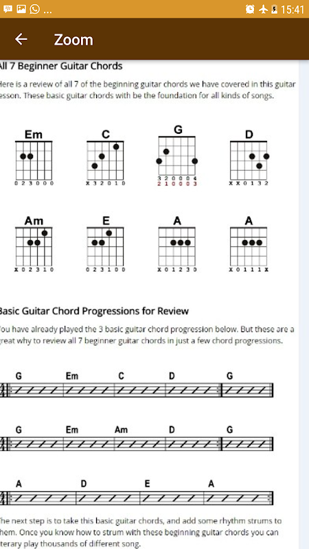 Bahkan jika Anda seorang pemula dan baru mulai bermain gitar, aplikasi ini akan mengajarkan cara bermain akord dengan mudah. Ada 23 akord untuk dipelajari dan jika itu tidak cukup, Anda dapat mendownload aplikasi Lanjutan kami juga. Belajar gitar tidak mudah, tapi dengan aplikasi pelajaran ini Anda akan belajar dengan cepat dan sama baiknya dengan tutor.