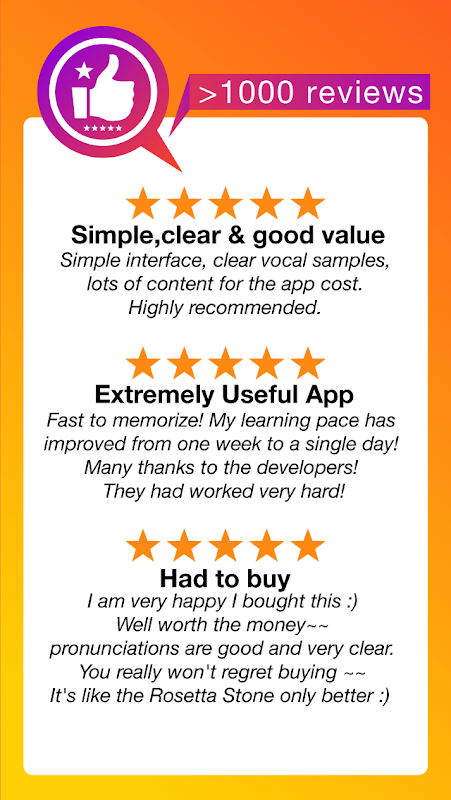 Of course it's most EFFECTIVE when it's FUN, so we dug into all the research on what speeds-up language learning, and then combined those aspects into this delightful little app. We even added pictures of HANDSOME men and PRETTY ladies, not for objectification but because it's objectively proven to increase the attention span of both men and women!