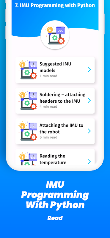 Aplikasi Belajar Kejuruteraan Robotik mengandungi semua kandungan tentang robot dan jenis kawalan dan kerja robotnya, ciri dan sifatnya .Apl Belajar Kejuruteraan Robotik juga mengandungi pengetahuan tentang jenis motor servo dan Kod, Elektronik, Pengaturcaraan IMU dengan Python .Mereka juga mempunyai pengetahuan tentang Menyambung Sensor robotik.