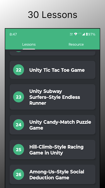 Kuasai pembangunan permainan Unity dengan aplikasi pembelajaran yang paling komprehensif dan mesra pemula. Sama ada anda ingin mencipta permainan 2D, dunia 3D atau pengalaman VR/AR, apl ini akan membimbing anda langkah demi langkah — tiada pengalaman terdahulu diperlukan!