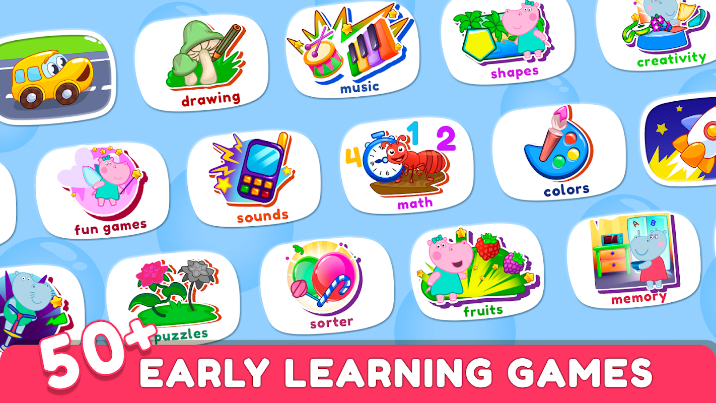Sebagai contoh, permainan ini menampilkan pelbagai halaman mewarna yang akan membantu mengembangkan kreativiti kanak-kanak dan meningkatkan kemahiran motor halus mereka. Kanak-kanak akan dapat mewarnakan watak dan objek yang berbeza yang mereka suka. Di samping itu, terdapat juga pelbagai teka-teki yang akan membantu mengembangkan pemikiran logik, imaginasi spatial, dan ketabahan. Kanak-kanak akan dapat menyusun teka-teki dengan imej Hippo dan watak lain.
