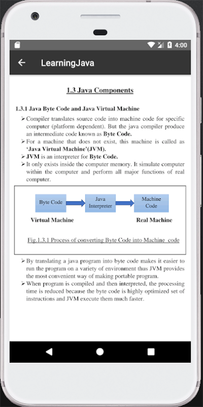 Aplikasi ini menyediakan tutorial yang disusun dan dihibur. Selain itu, ia menyediakan program tambahan dan asas pengekodan unik untuk pengguna Java, di mana pelajar boleh menulis dan menjalankan program sendiri dan menguji kemahiran pengaturcaraan sendiri sebagai pelajar belajar. Ujian akan membantu pelajar menilai diri sendiri sepanjang permohonan ini. Juga permohonan ini akan menjadi sokongan kepada sesiapa sahaja yang bersedia untuk temubual syarikat atau untuk masuk peperiksaan melalui soalan wawancara yang disediakan dalam permohonan ini.