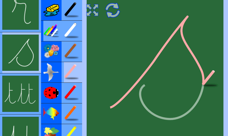 A child or an adult can also create his/her own templates of letters and forms, by pressing the redo icon in the top left corner, then someone else can reproduce this new model.