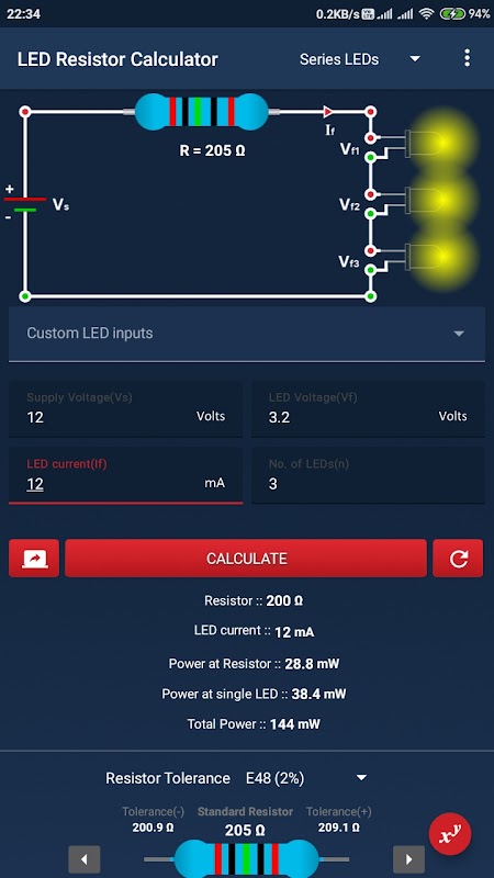 Aplikasi Kalkulator Perintang LED membantu mendapatkan nilai perintang untuk LED yang disambungkan secara bersiri dan selari. Lihat lebih banyak ciri dan butiran apl yang diberikan di bawah.
