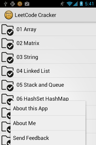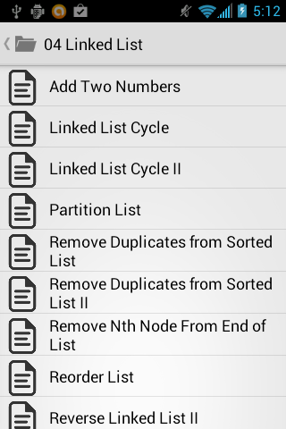 This app is distributing my solutions for problems on LeetCode Online Judge. Since you downloaded this App, I assume you already know what is LeetCode, and I also assume you are preparing for coding interviews. I classify problems in groups based on data structure or algorithm, and hope this will help you to think about those problems.