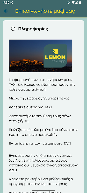 Μέσω της εφαρμογής Lemon taxi μπορείτε να: