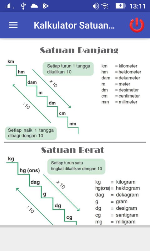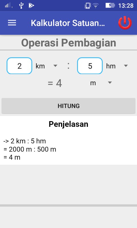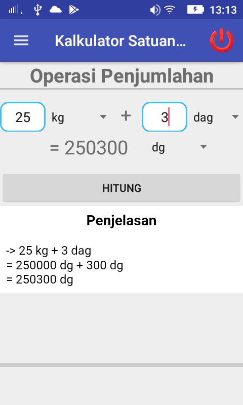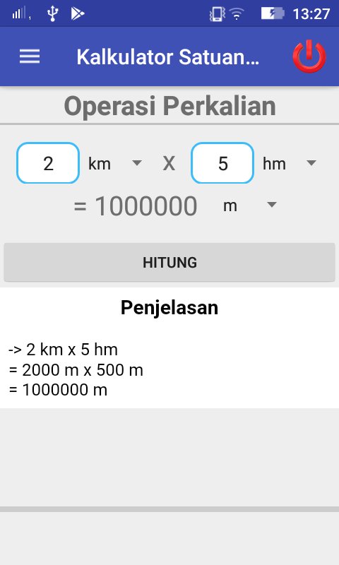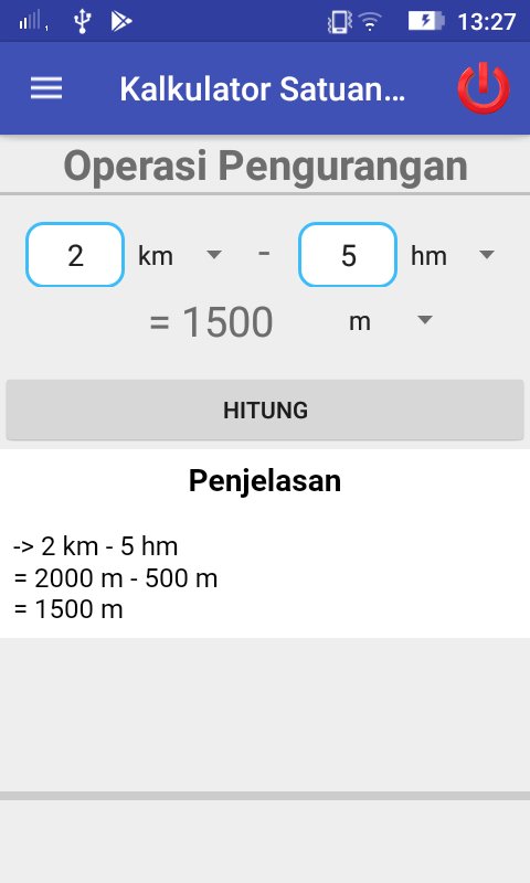 Aplikasi ini digunakan untuk menghitung dua nilai dan mengkonversi satuannya sesuai dengan satuan panjang yang ingin dicari atau satuan berat yang dicari
