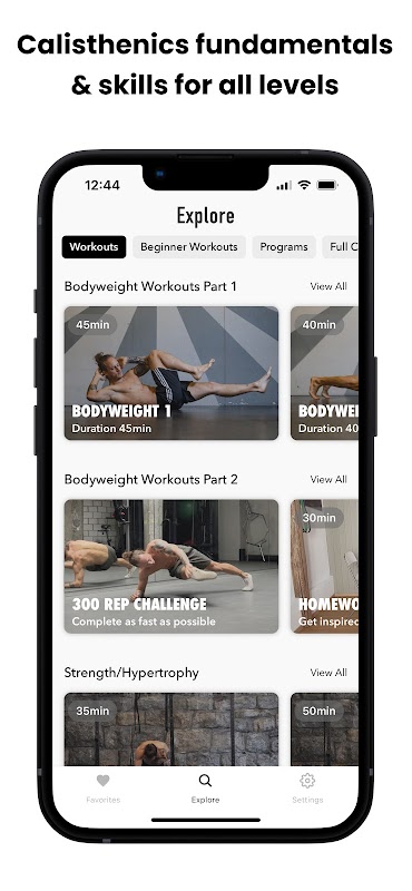 Terokai pelbagai pilihan senaman, sama ada anda lebih suka program 6-8 minggu berstruktur, rutin berat badan yang pantas, atau sekadar ingin bermain dan ikut serta – kemungkinannya tidak berkesudahan. Apl ini menawarkan pelbagai kepakaran dan gaya saya, meliputi senaman berat badan, senam, latihan dirian tangan, latihan mobiliti, rutin pergerakan, elemen koordinasi dan banyak lagi. Selain itu, apl ini menyediakan video dan tutorial pendidikan untuk membimbing anda melalui latihan, membantu anda menyempurnakan bentuk dan teknik anda.