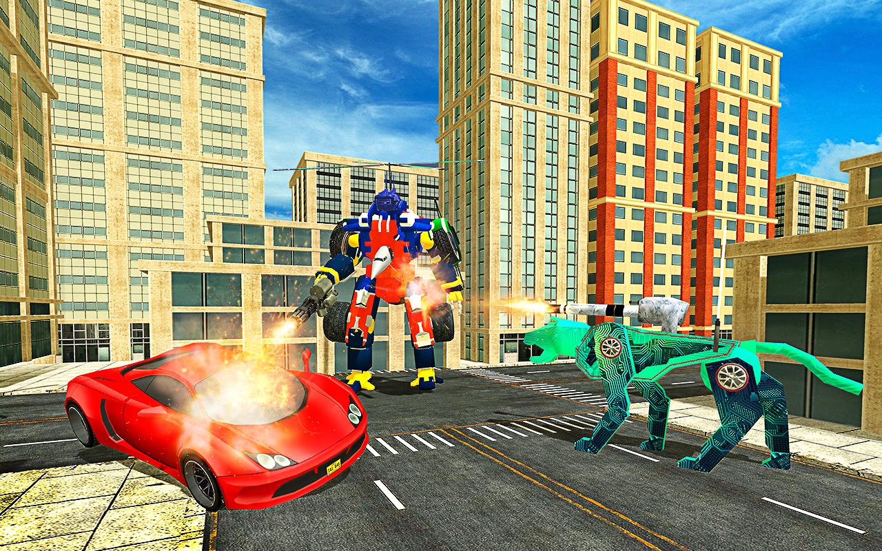 Control a super warrior leopard robot who can transform into many forms including plane, helicopter, car and motorcycle. Robot is equipped with unlimited ammos and 6 modern guns are fully loaded. Enjoy the best robot shooting games experience blended with robot battle and robot fighting games adventure.