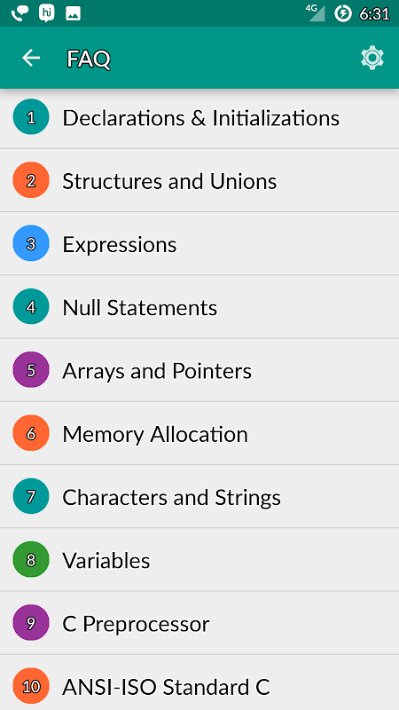 C programming app provides FAQs and interview questions with answers.
