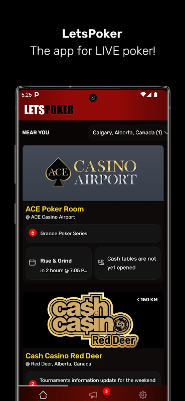 Kami di sini untuk membantu anda mencari kejohanan poker langsung dan permainan wang tunai terbaik di kawasan anda. Anda juga boleh menjejaki rakan anda, melihat siapa yang bermain di mana, dan mendapatkan semua maklumat tentang acara akan datang.