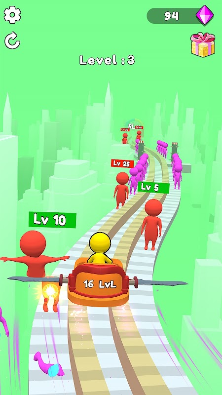 Naik tahap anda untuk mencapai bos. Anda perlu memotong musuh untuk meningkatkan tahap anda