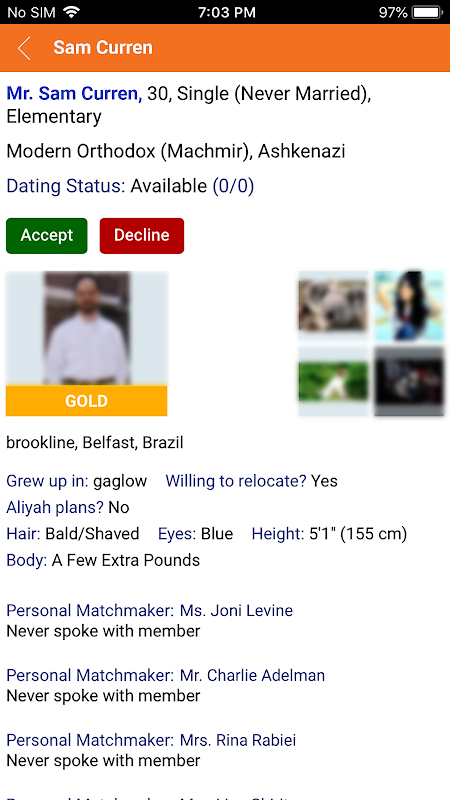 • Penjodoh memilih profil padanan yang berpotensi dan memberi anda akses kepada profil tersebut untuk semakan anda. Apl ini membolehkan pengguna bertanya soalan tentang profil perlawanan dan untuk pembuat jodoh memberitahu ahli mengapa mereka fikir ia adalah idea perlawanan yang hebat. Jika ahli mempunyai maklum balas tentang perlawanan itu, mereka boleh menghantar mesej dengan mudah untuk menyerlahkan keperluan dating mereka.
