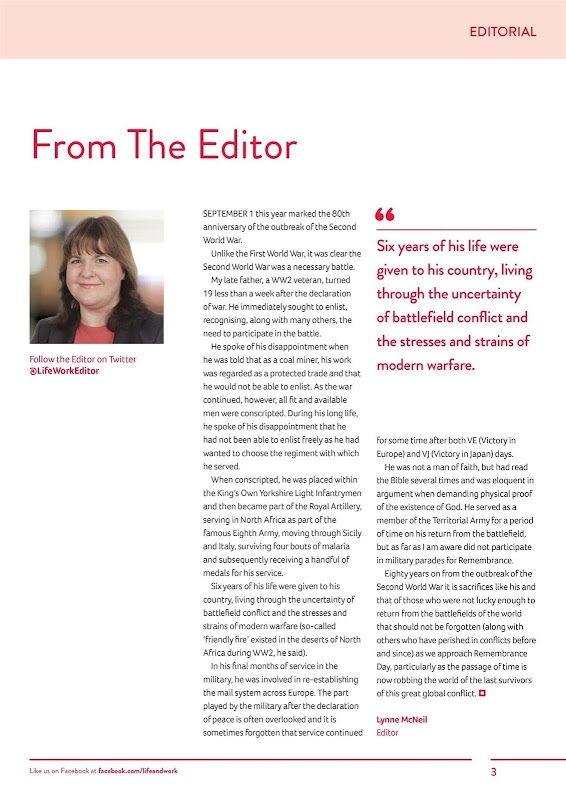 Life and Work was first published in 1879 and is the editorially independent monthly magazine of the Church Scotland.