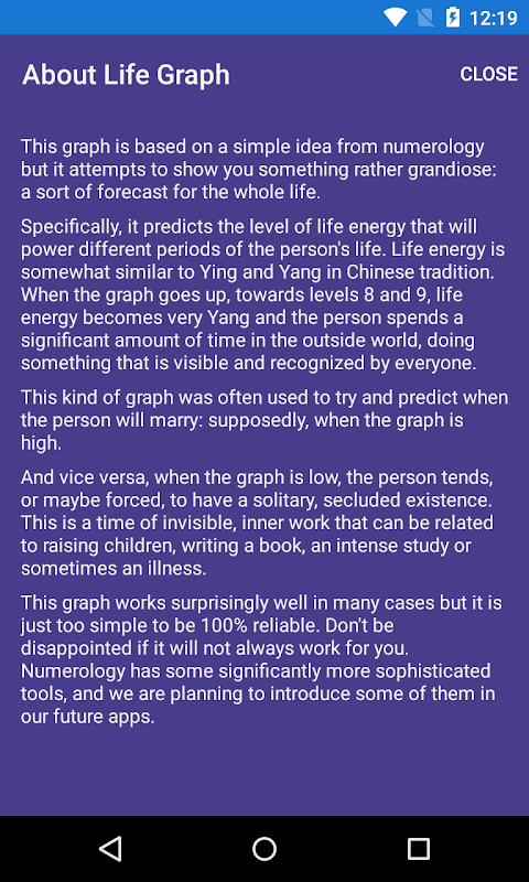 A app berdasarkan numerologi-yang mengira tahap tenaga melalui kehidupan.